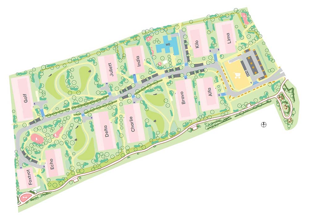 Bytové domy vyrůstají mezi rozlehlým zeleným parkem o celkové ploše 9 tisíc m2, a právě dokončenou školkou. Tu nyní Skanska předává městské části Praha 19 a k jejíž kolaudaci by mělo dojít už na jaře. Celý areál projektu budou propojovat prvky modrozelené infrastruktury, společné prostory pro setkávání, ale také klidná místa pro práci či odpočinek. Bytové domy Juliett a India splňují přísné požadavky enviromentální certifikace BREEAM a dosahují velmi nízké energetické náročnosti PENB – B. Oproti referenční budově tak vychází úsporněji o 46 %.